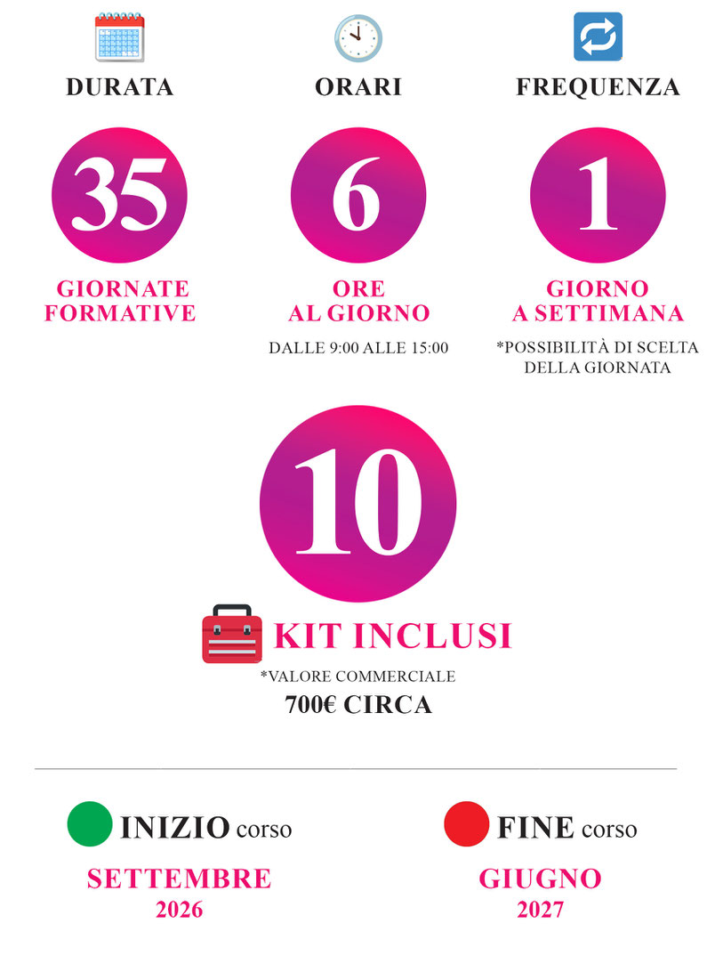 *L’attestato di partecipazione rilasciato al termine del corso ha valore di riconoscimento delle competenze acquisite durante il percorso formativo. Non costituisce titolo abilitante all’apertura di un’attività autonoma, né sostituisce qualifiche professionali riconosciute a livello normativo. La presente dichiarazione è rilasciata al fine di garantire trasparenza e tutela, in conformità alle normative vigenti.